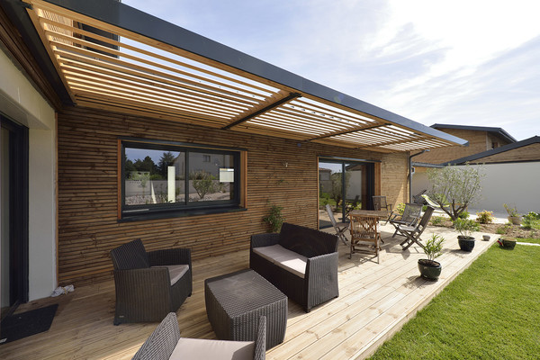 Bardage essence Douglas- VIBRATO de chez PiveteauCouverture bac acierMenuiseries aluminium RAL 7016