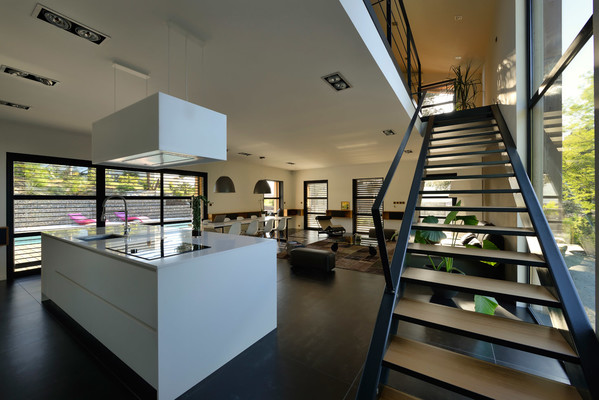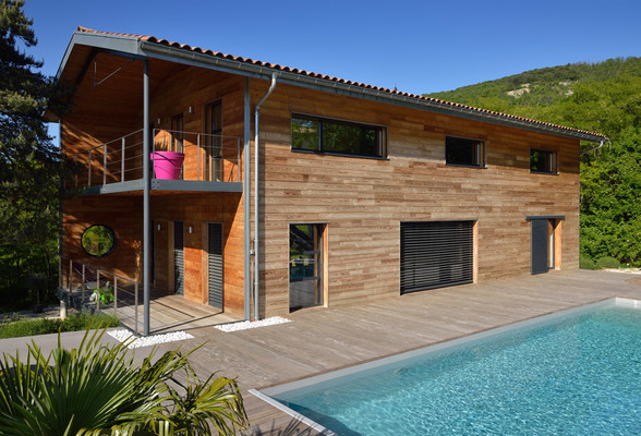Équilibre subtil des éléments naturels : bois, métal, galets du Rhône, végétation.